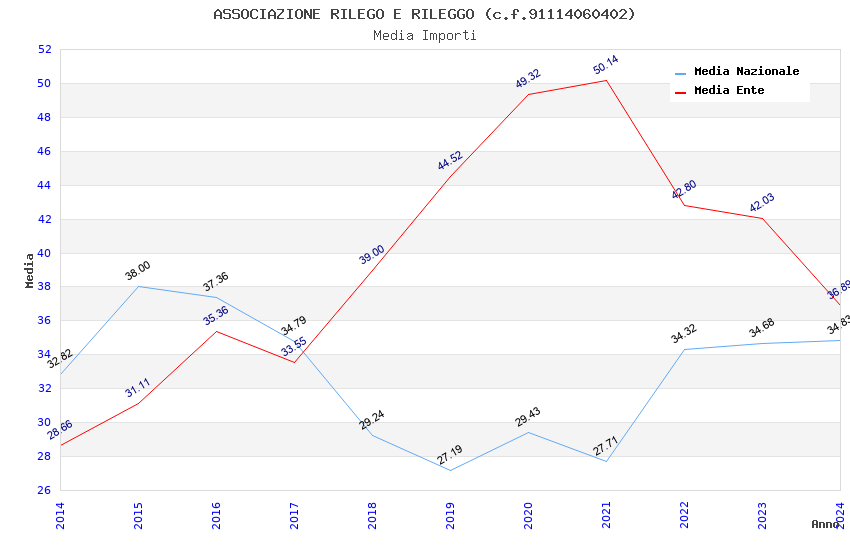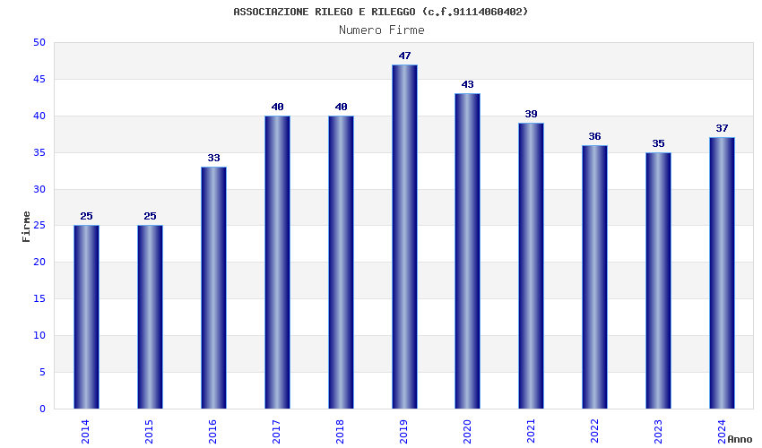 | Anno | Firme | Importi | Media | Naz. | Reg. | Prov. | Comu. |