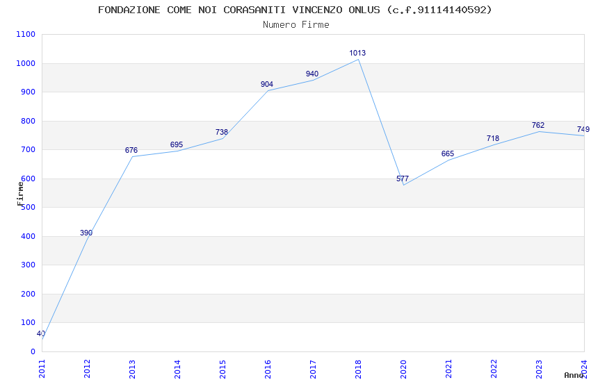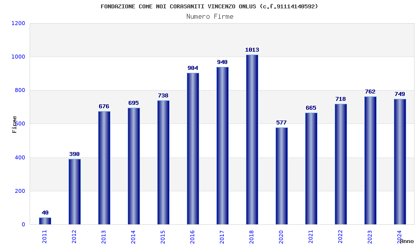 | Anno | Firme | Importi | Media | Naz. | Reg. | Prov. | Comu. |