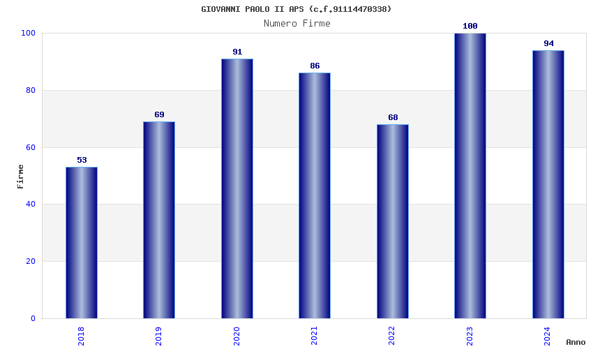 | Anno | Firme | Importi | Media | Naz. | Reg. | Prov. | Comu. |