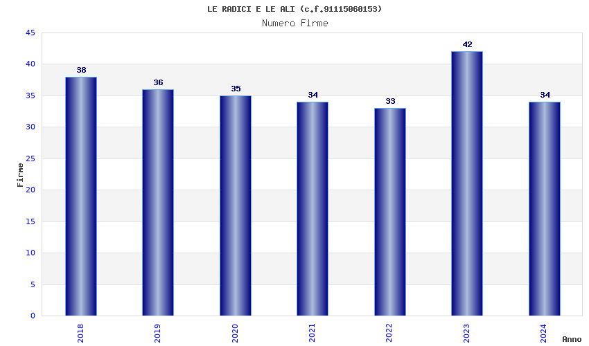 | Anno | Firme | Importi | Media | Naz. | Reg. | Prov. | Comu. |