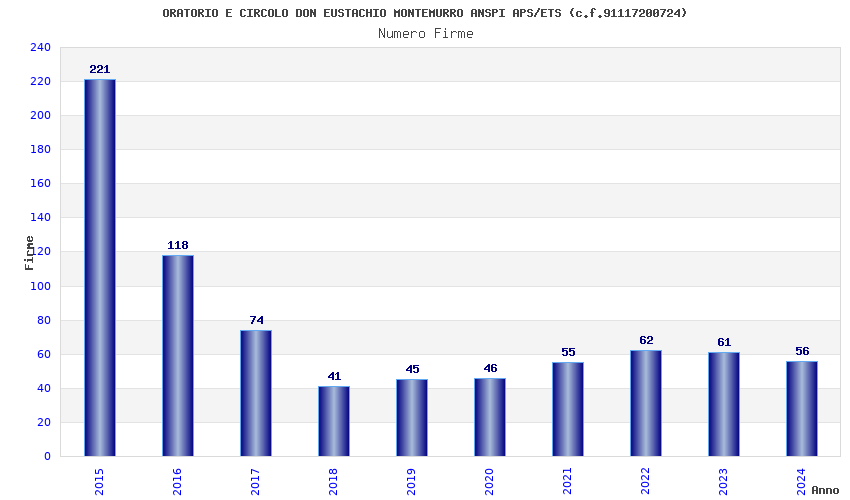 | Anno | Firme | Importi | Media | Naz. | Reg. | Prov. | Comu. |