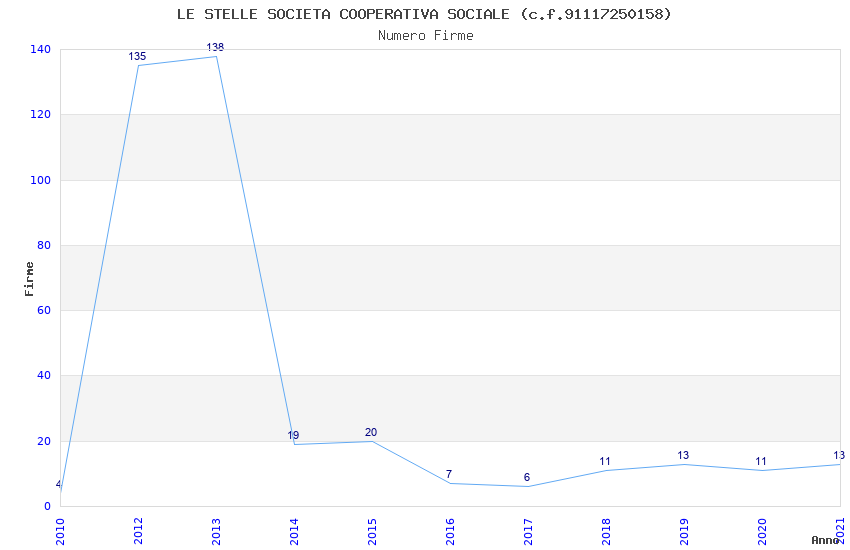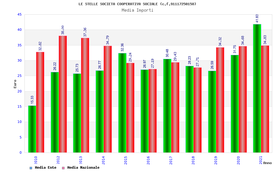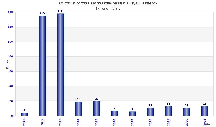 | Anno | Firme | Importi | Media | Naz. | Reg. | Prov. | Comu. |