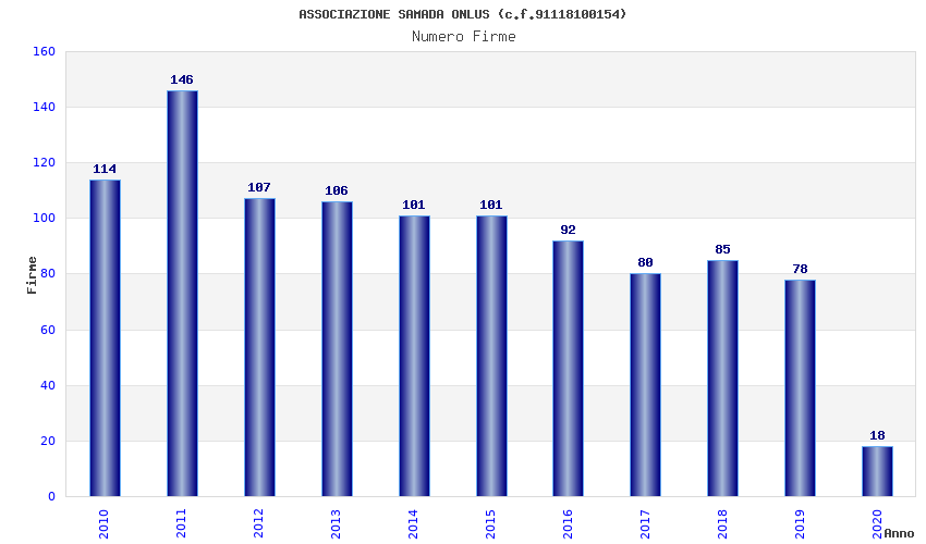 | Anno | Firme | Importi | Media | Naz. | Reg. | Prov. | Comu. |