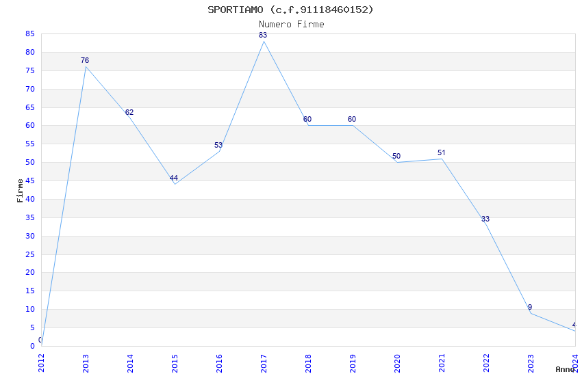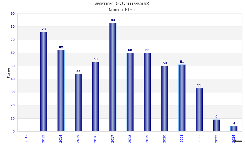 | Anno | Firme | Importi | Media | Naz. | Reg. | Prov. | Comu. |