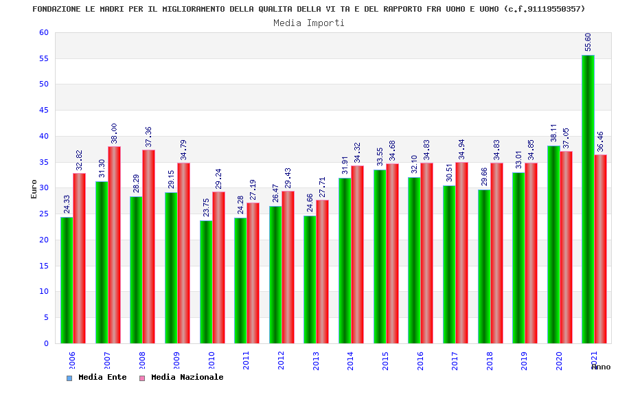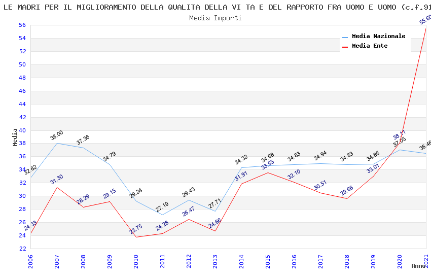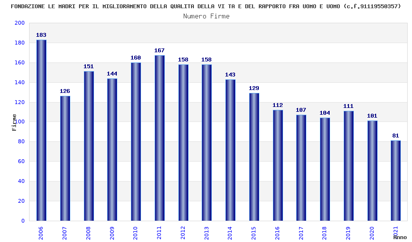 | Anno | Firme | Importi | Media | Naz. | Reg. | Prov. | Comu. |