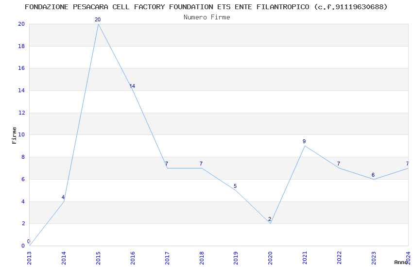 | 2015 | 20 | 845,32 | 42,27 | 33.599 | 574 | 146 | 85 |
