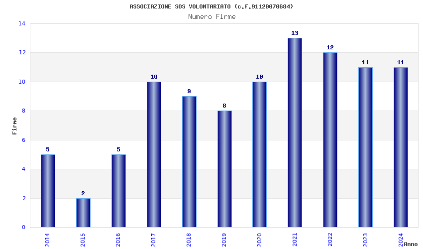 | Anno | Firme | Importi | Media | Naz. | Reg. | Prov. | Comu. |