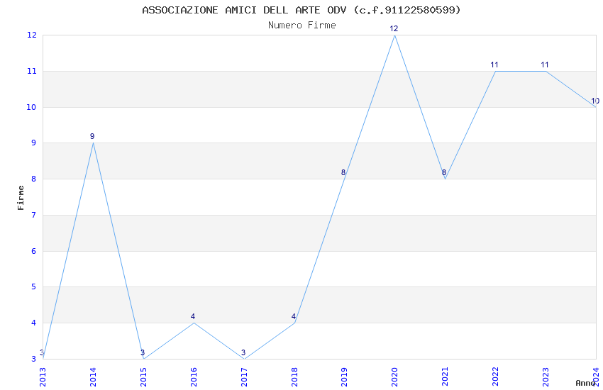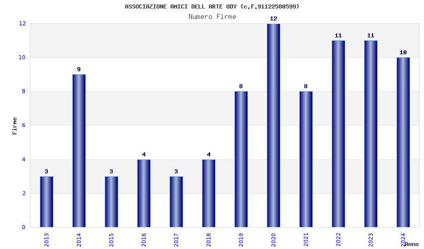 | Anno | Firme | Importi | Media | Naz. | Reg. | Prov. | Comu. |