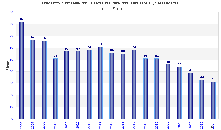 | Anno | Firme | Importi | Media | Naz. | Reg. | Prov. | Comu. |