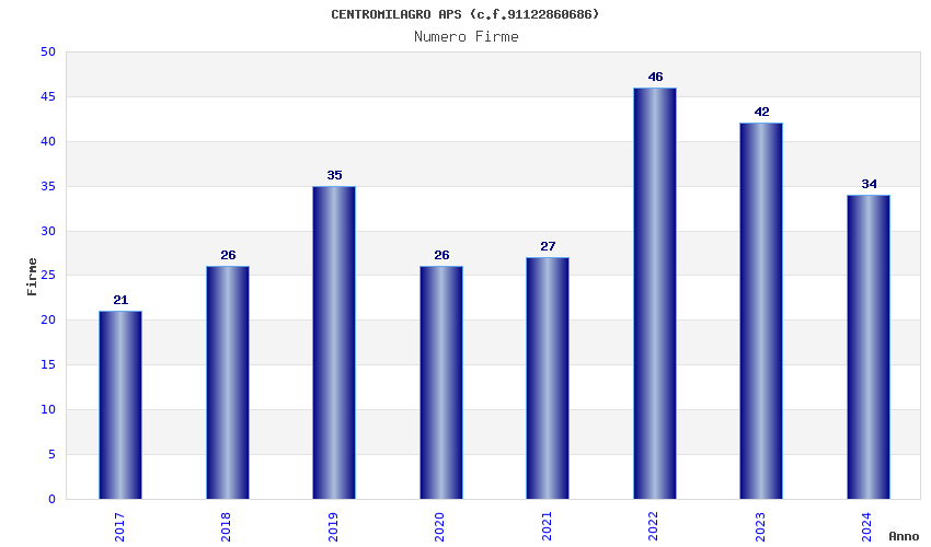 | Anno | Firme | Importi | Media | Naz. | Reg. | Prov. | Comu. |