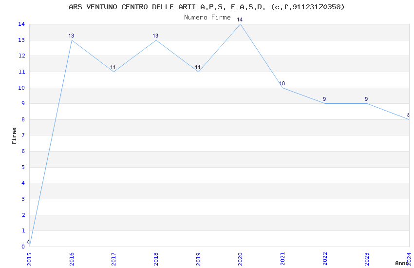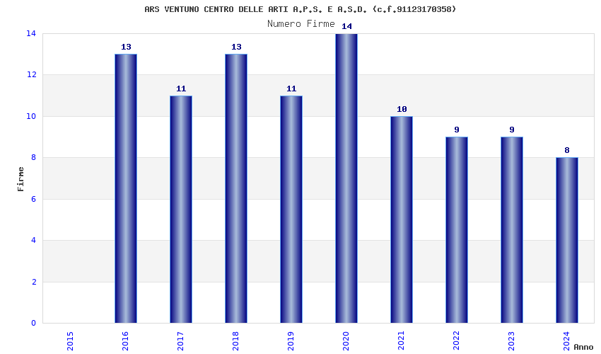 | Anno | Firme | Importi | Media | Naz. | Reg. | Prov. | Comu. |
