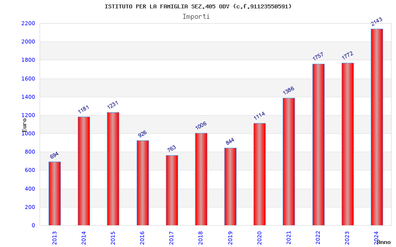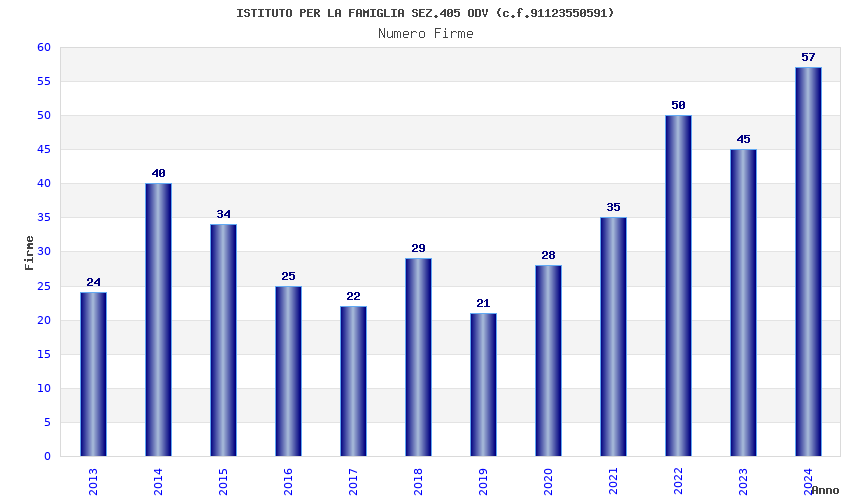 | Anno | Firme | Importi | Media | Naz. | Reg. | Prov. | Comu. |