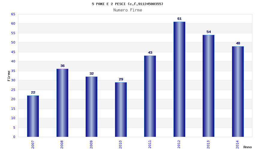 | Anno | Firme | Importi | Media | Naz. | Reg. | Prov. | Comu. |