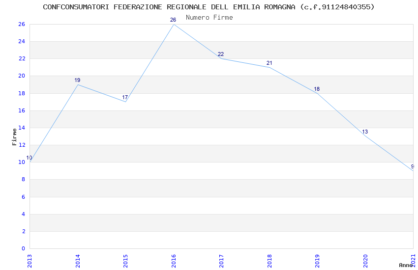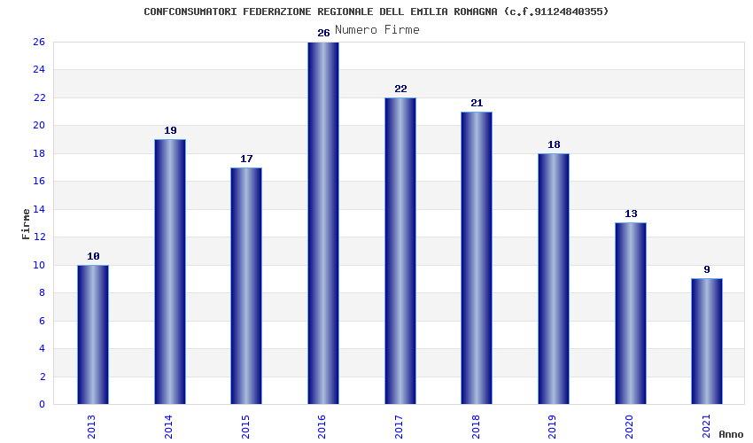 | Anno | Firme | Importi | Media | Naz. | Reg. | Prov. | Comu. |