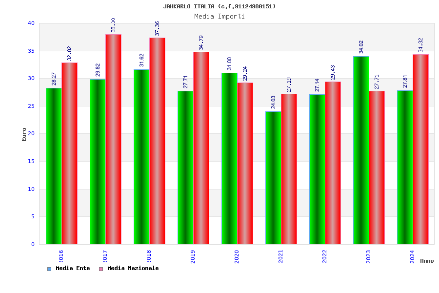 | Anno | Firme | Importi | Media | Naz. | Reg. | Prov. | Comu. |