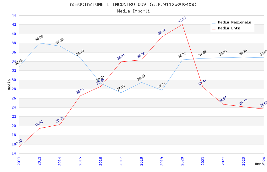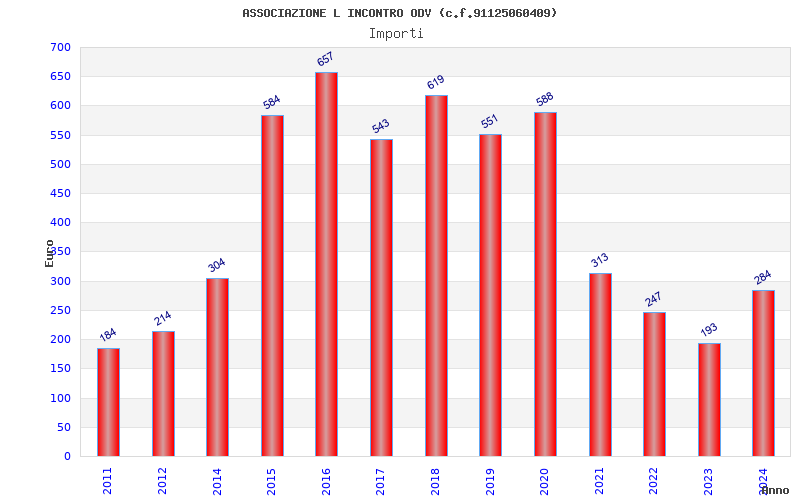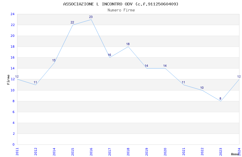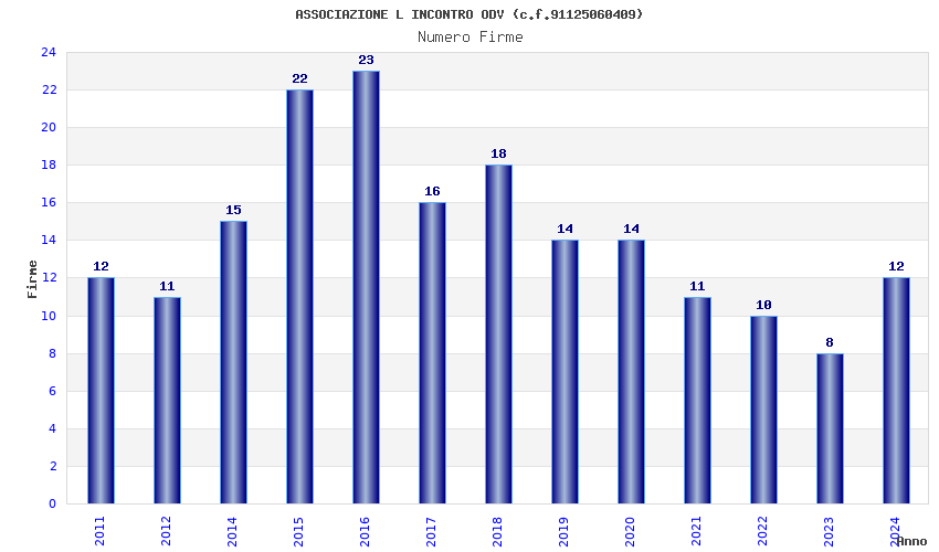 | Anno | Firme | Importi | Media | Naz. | Reg. | Prov. | Comu. |