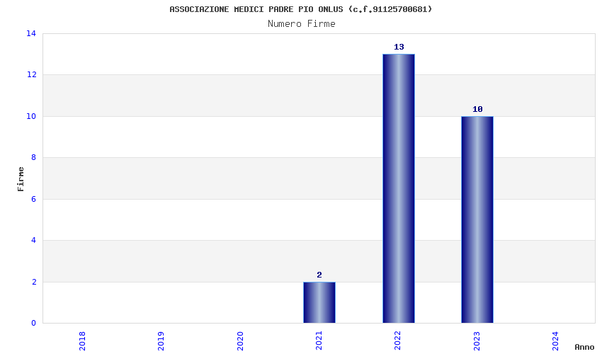 | Anno | Firme | Importi | Media | Naz. | Reg. | Prov. | Comu. |