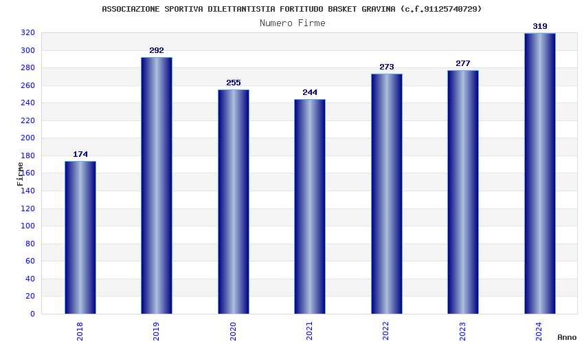 | Anno | Firme | Importi | Media | Naz. | Reg. | Prov. | Comu. |