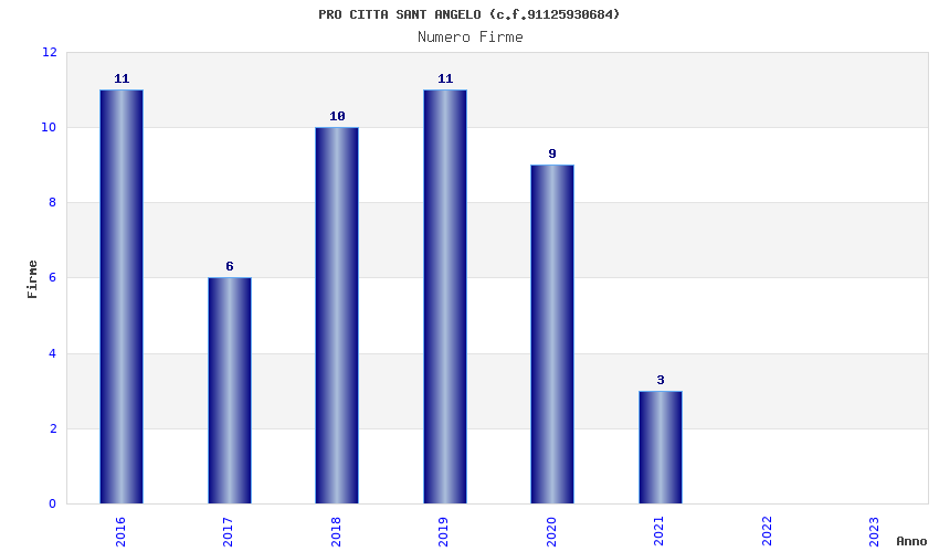 | Anno | Firme | Importi | Media | Naz. | Reg. | Prov. | Comu. |
