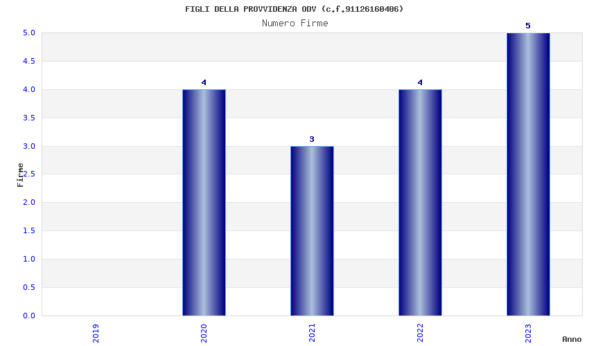 | Anno | Firme | Importi | Media | Naz. | Reg. | Prov. | Comu. |