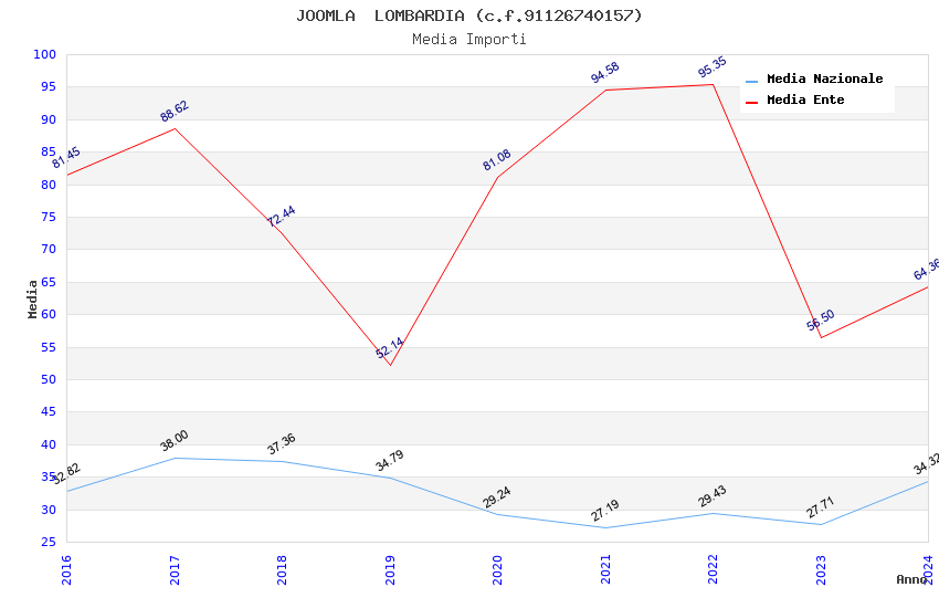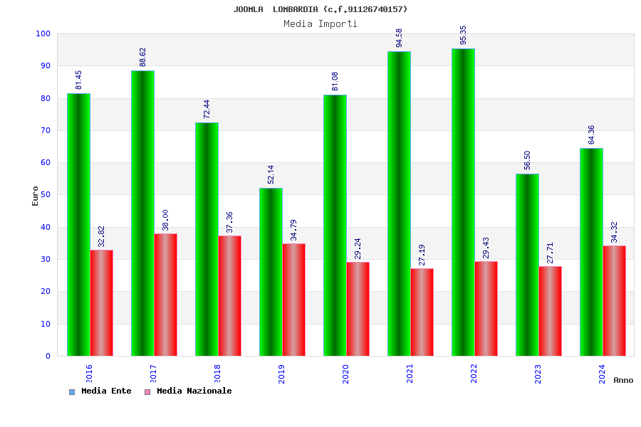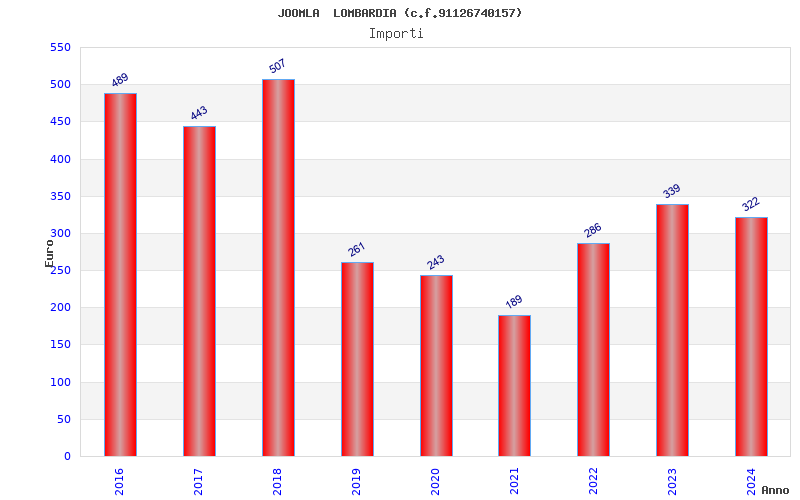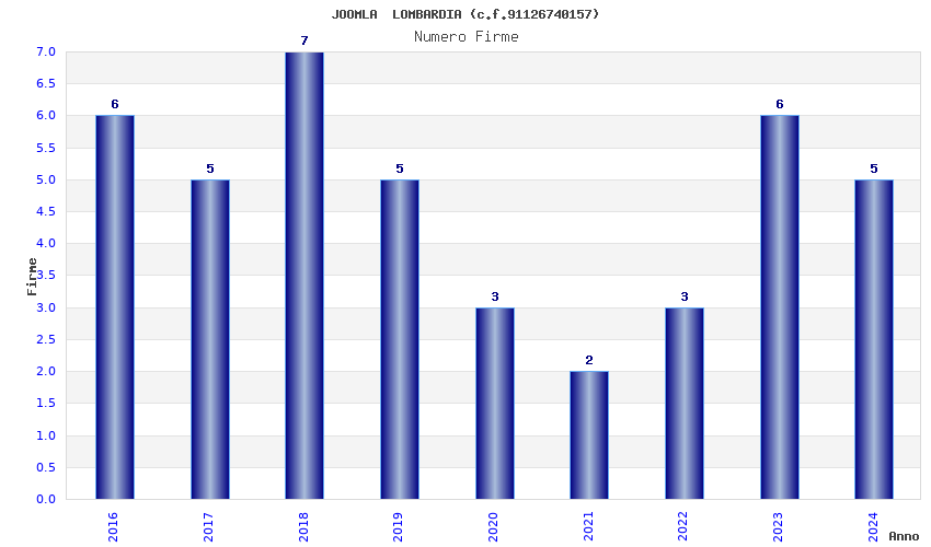 | Anno | Firme | Importi | Media | Naz. | Reg. | Prov. | Comu. |