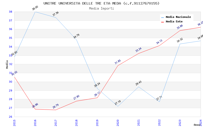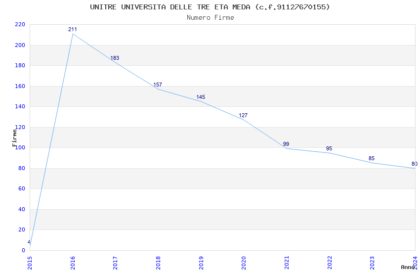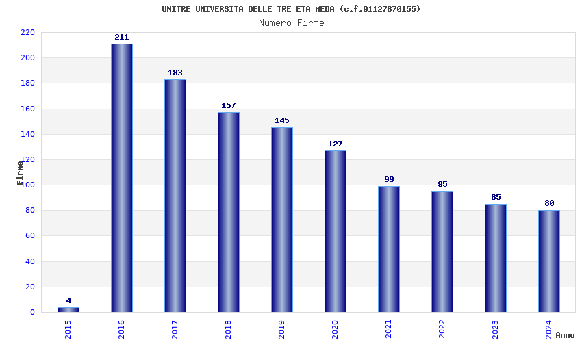 | Anno | Firme | Importi | Media | Naz. | Reg. | Prov. | Comu. |