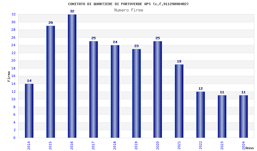 | Anno | Firme | Importi | Media | Naz. | Reg. | Prov. | Comu. |