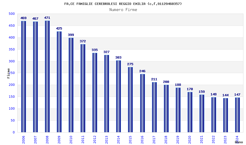 | Anno | Firme | Importi | Media | Naz. | Reg. | Prov. | Comu. |