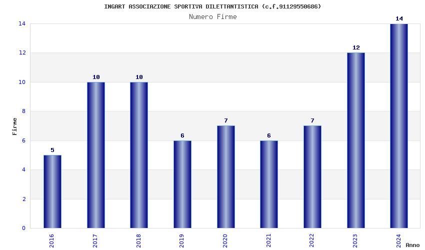 | Anno | Firme | Importi | Media | Naz. | Reg. | Prov. | Comu. |