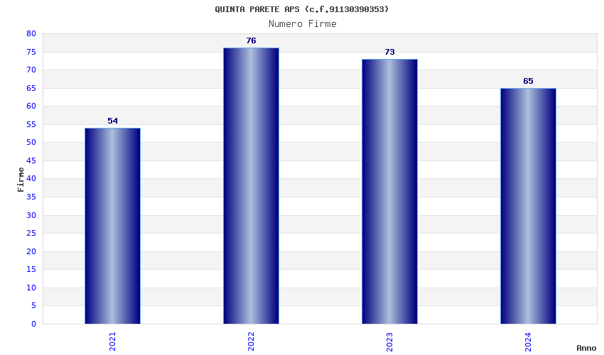 | Anno | Firme | Importi | Media | Naz. | Reg. | Prov. | Comu. |