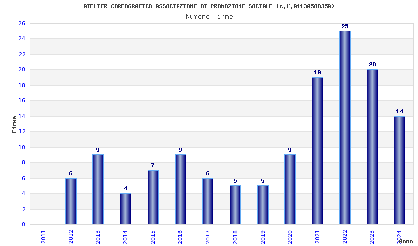 | Anno | Firme | Importi | Media | Naz. | Reg. | Prov. | Comu. |