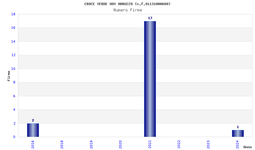 | Anno | Firme | Importi | Media | Naz. | Reg. | Prov. | Comu. |