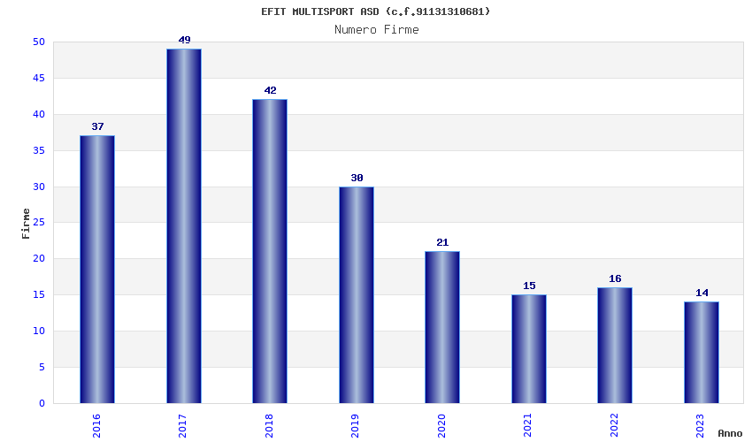 | Anno | Firme | Importi | Media | Naz. | Reg. | Prov. | Comu. |
