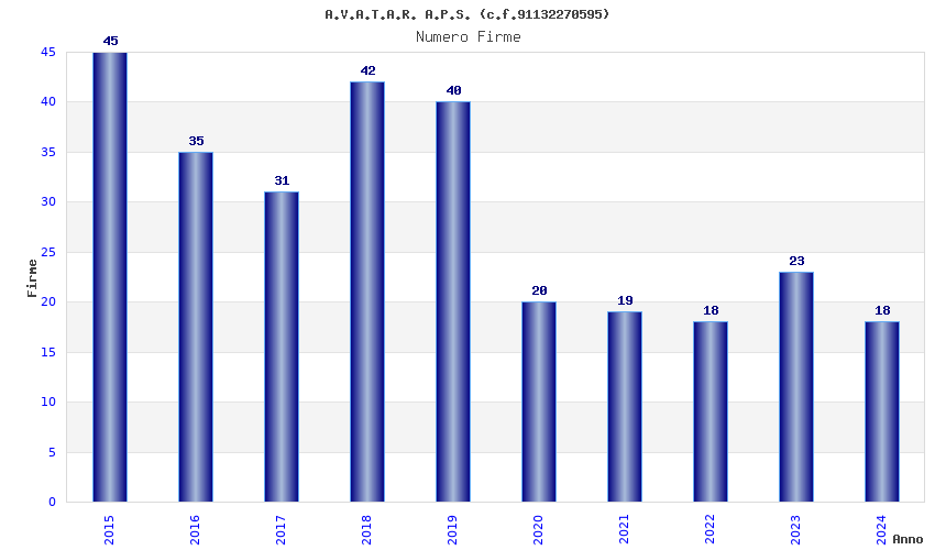 | Anno | Firme | Importi | Media | Naz. | Reg. | Prov. | Comu. |
