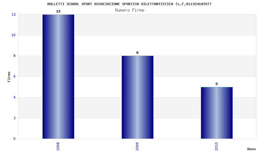 | Anno | Firme | Importi | Media | Naz. | Reg. | Prov. | Comu. |