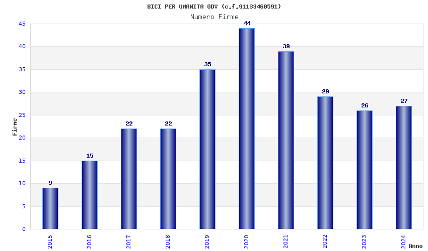 | Anno | Firme | Importi | Media | Naz. | Reg. | Prov. | Comu. |