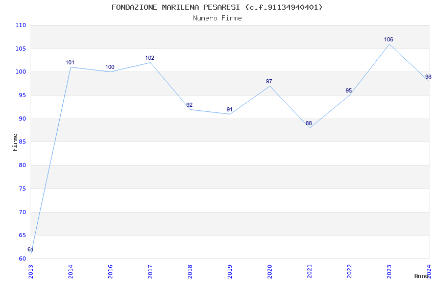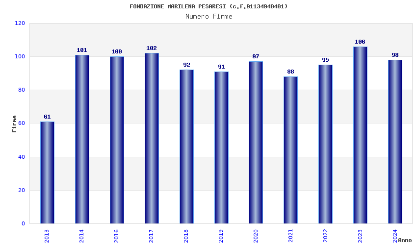 | Anno | Firme | Importi | Media | Naz. | Reg. | Prov. | Comu. |