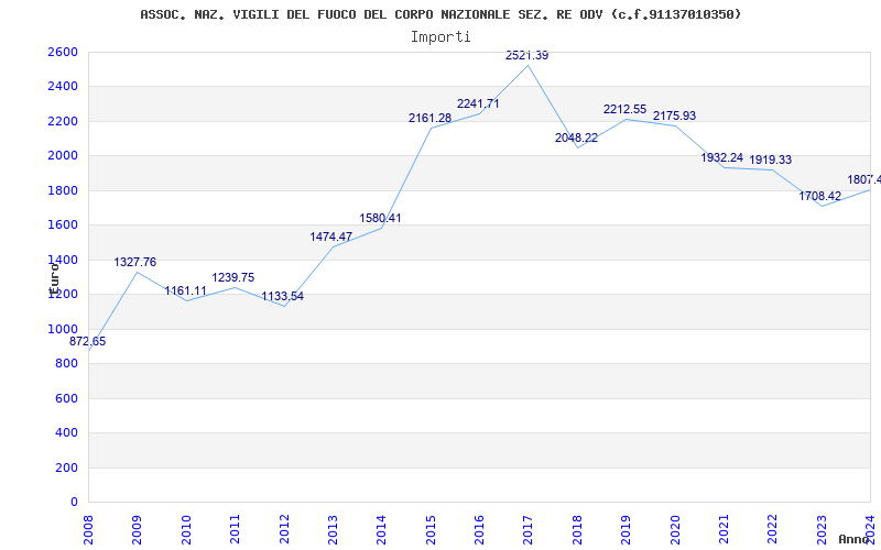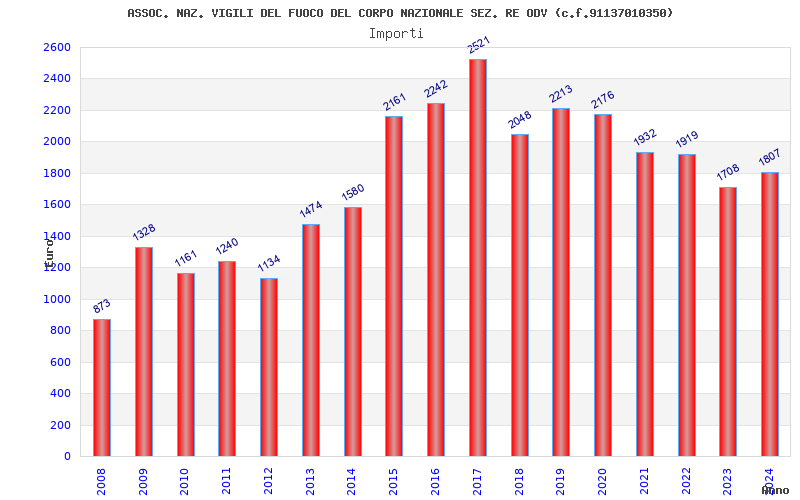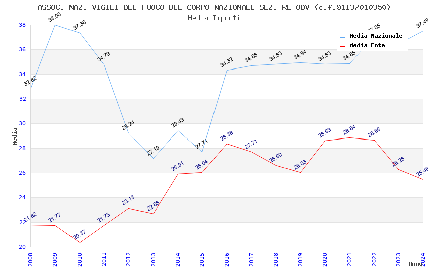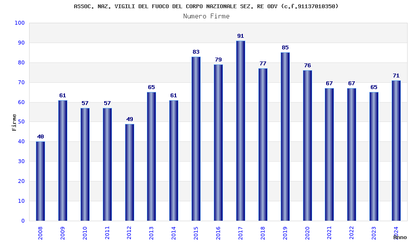| Anno | Firme | Importi | Media | Naz. | Reg. | Prov. | Comu. |