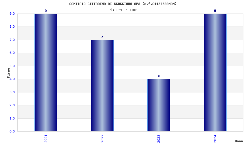 | Anno | Firme | Importi | Media | Naz. | Reg. | Prov. | Comu. |