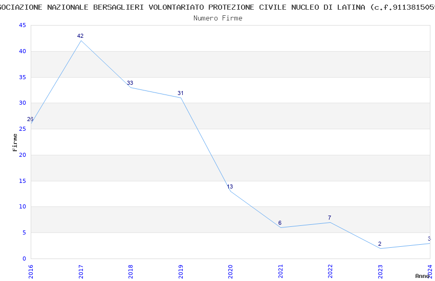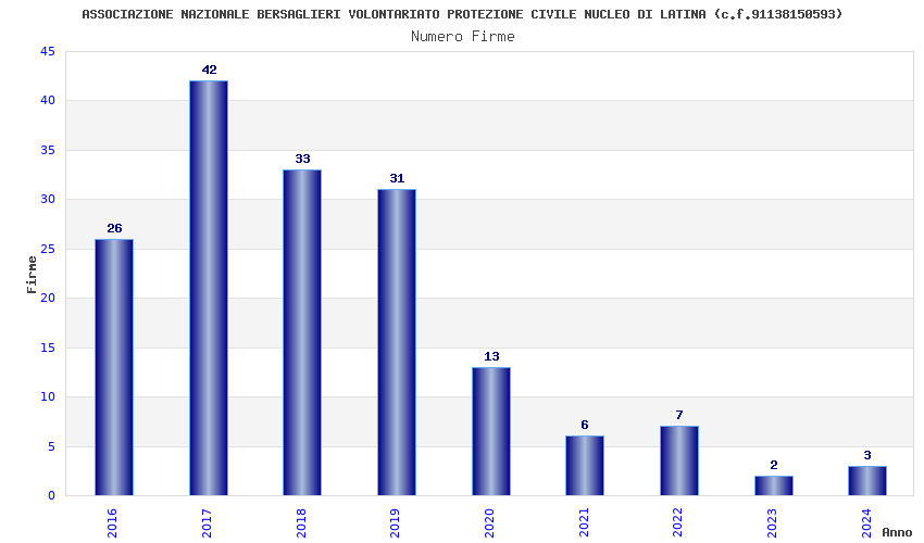 | Anno | Firme | Importi | Media | Naz. | Reg. | Prov. | Comu. |