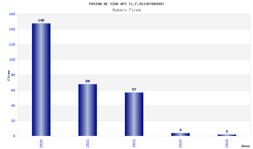 | Anno | Firme | Importi | Media | Naz. | Reg. | Prov. | Comu. |