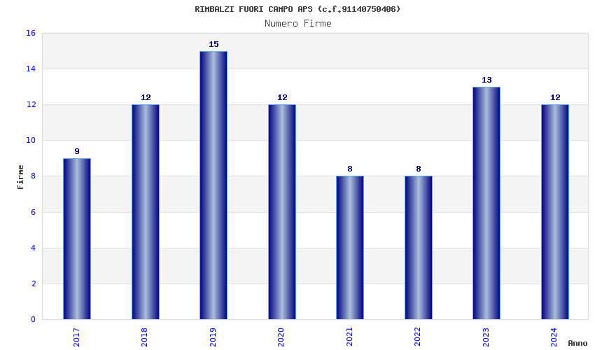 | Anno | Firme | Importi | Media | Naz. | Reg. | Prov. | Comu. |