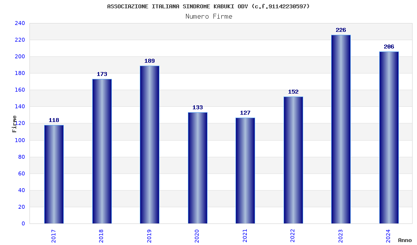 | Anno | Firme | Importi | Media | Naz. | Reg. | Prov. | Comu. |