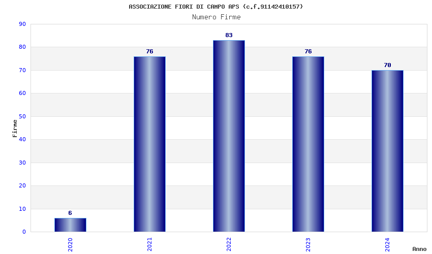 | Anno | Firme | Importi | Media | Naz. | Reg. | Prov. | Comu. |