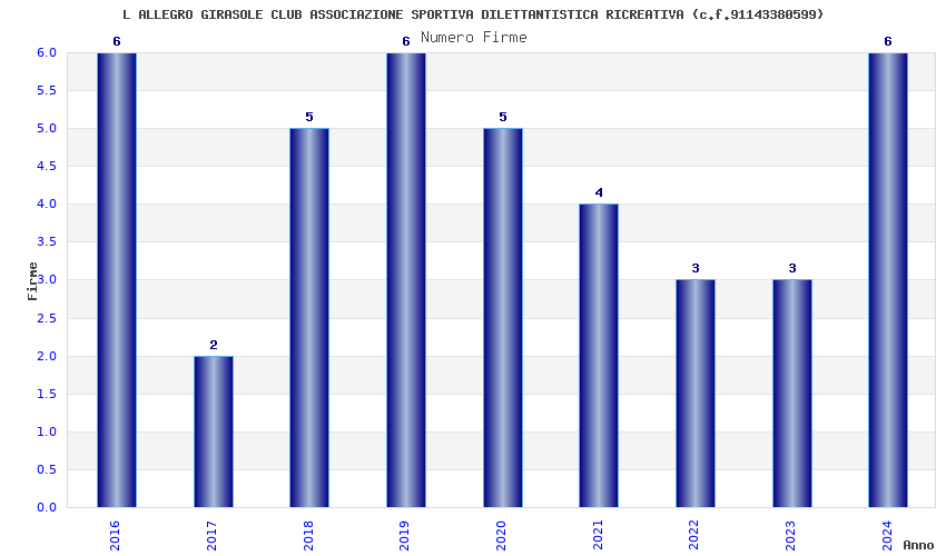 | Anno | Firme | Importi | Media | Naz. | Reg. | Prov. | Comu. |