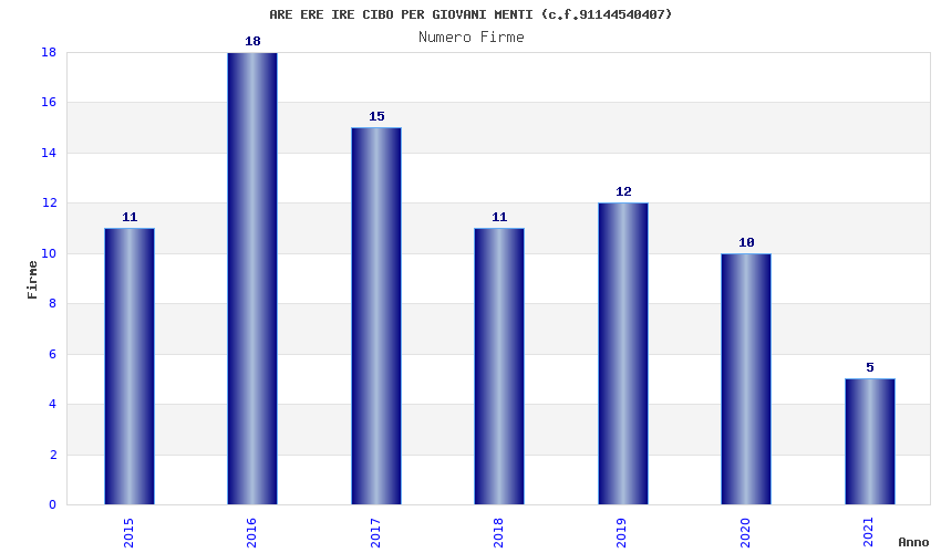 | Anno | Firme | Importi | Media | Naz. | Reg. | Prov. | Comu. |