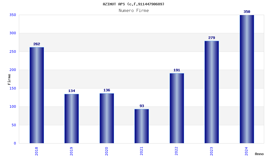| Anno | Firme | Importi | Media | Naz. | Reg. | Prov. | Comu. |