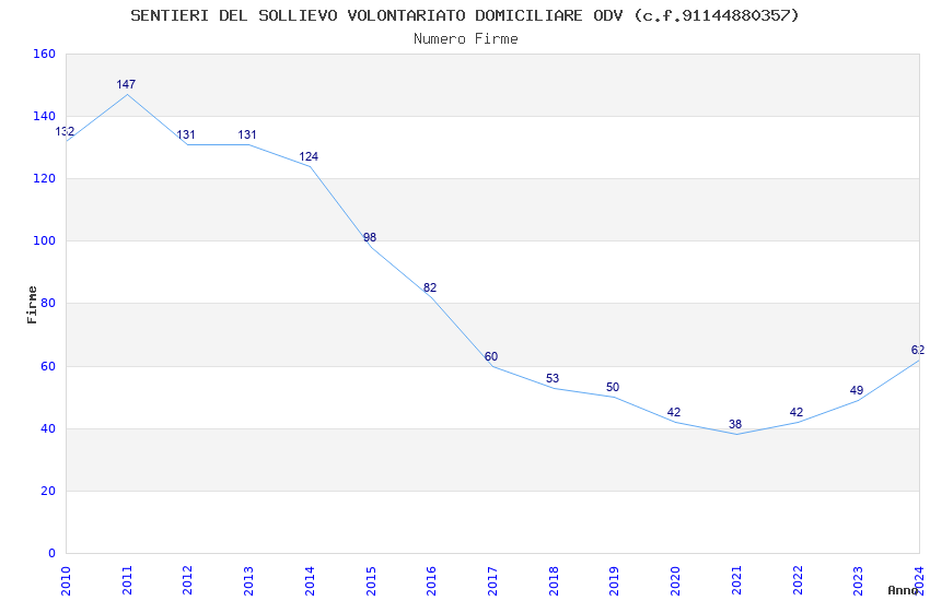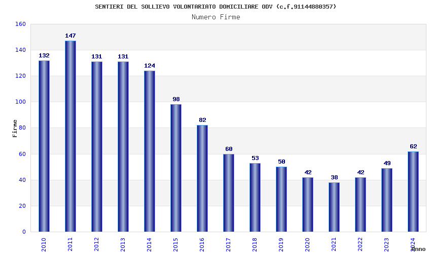 | Anno | Firme | Importi | Media | Naz. | Reg. | Prov. | Comu. |