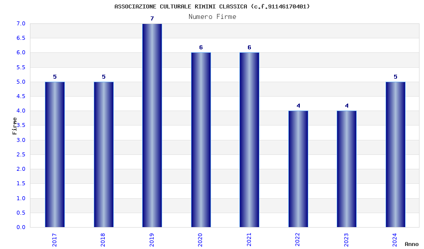 | Anno | Firme | Importi | Media | Naz. | Reg. | Prov. | Comu. |