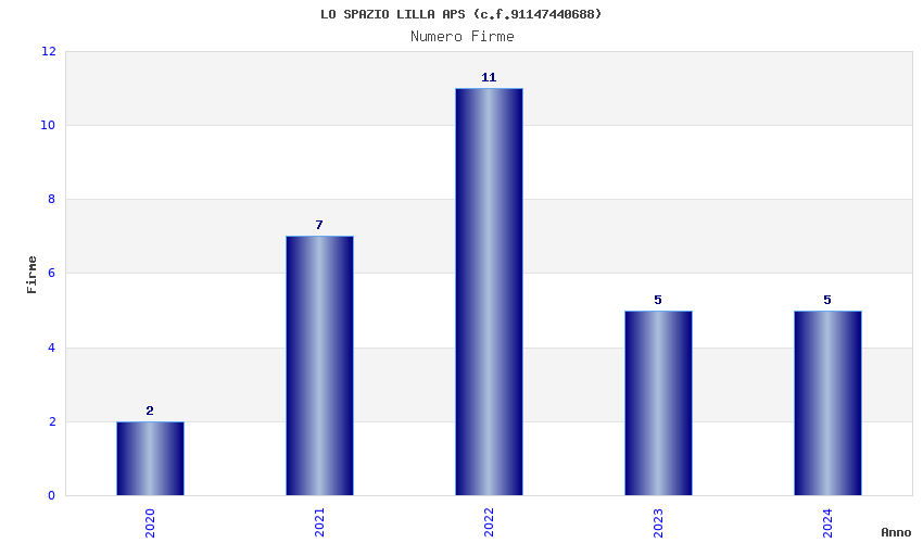 | Anno | Firme | Importi | Media | Naz. | Reg. | Prov. | Comu. |